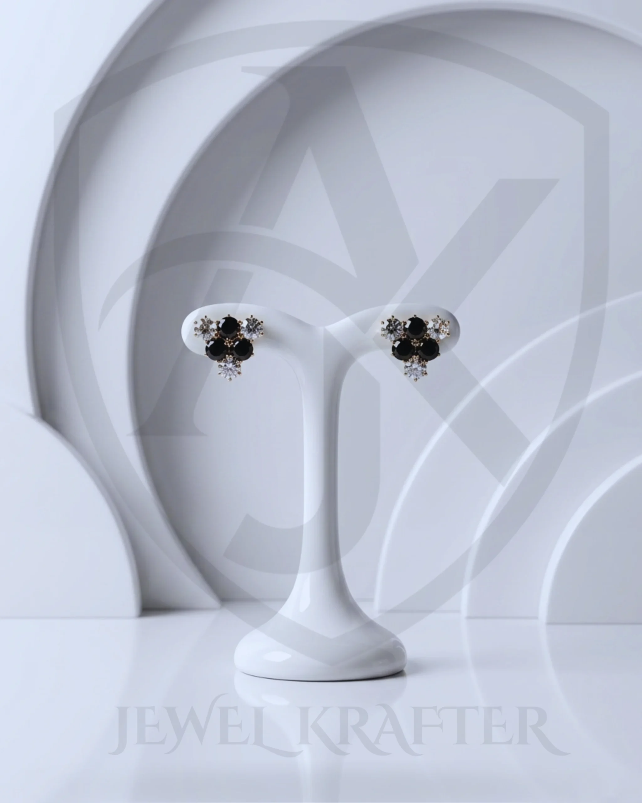 Dainty cluster studs combining jet black and clear stones, adding a subtle touch of glam to casual and office wear.