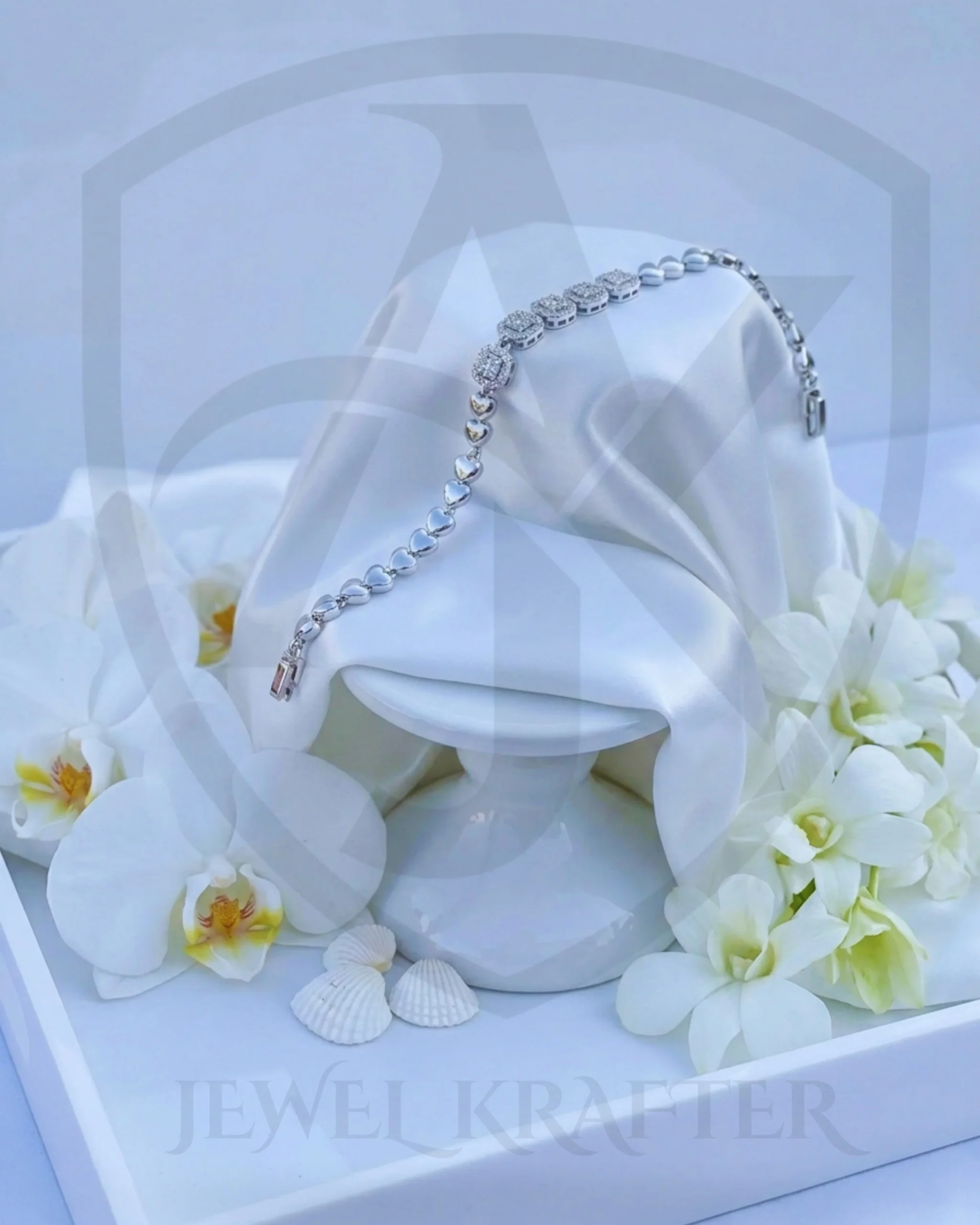 A delicate heart link chain leads to a crown like cluster of round crystal settings, adding just the right amount of luxe sparkle to your wrist.