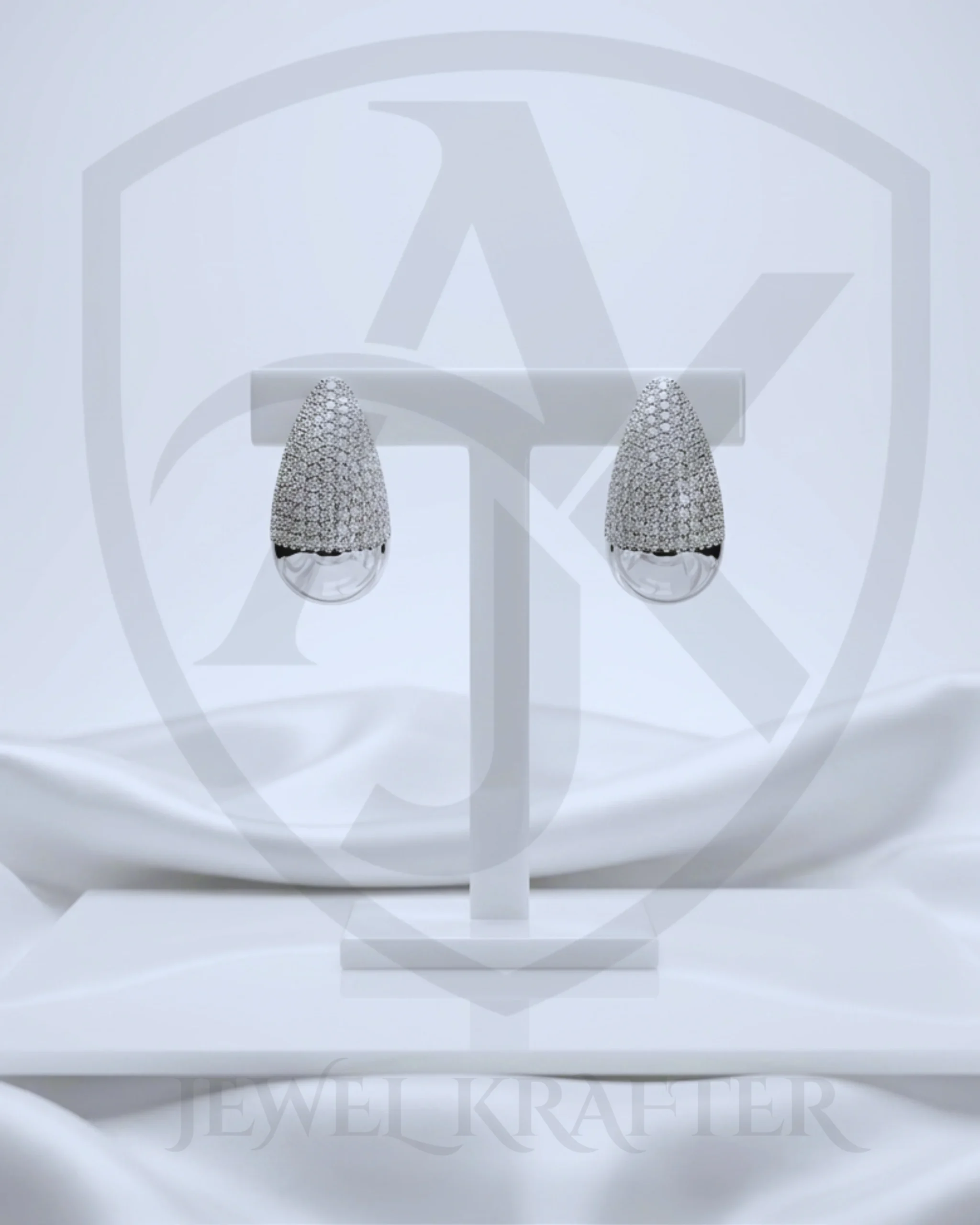 Sculpted in solid steel with a pave style crystal top and sleek polished base, these teardrop earrings bring bold, modern glamour to any outfit.