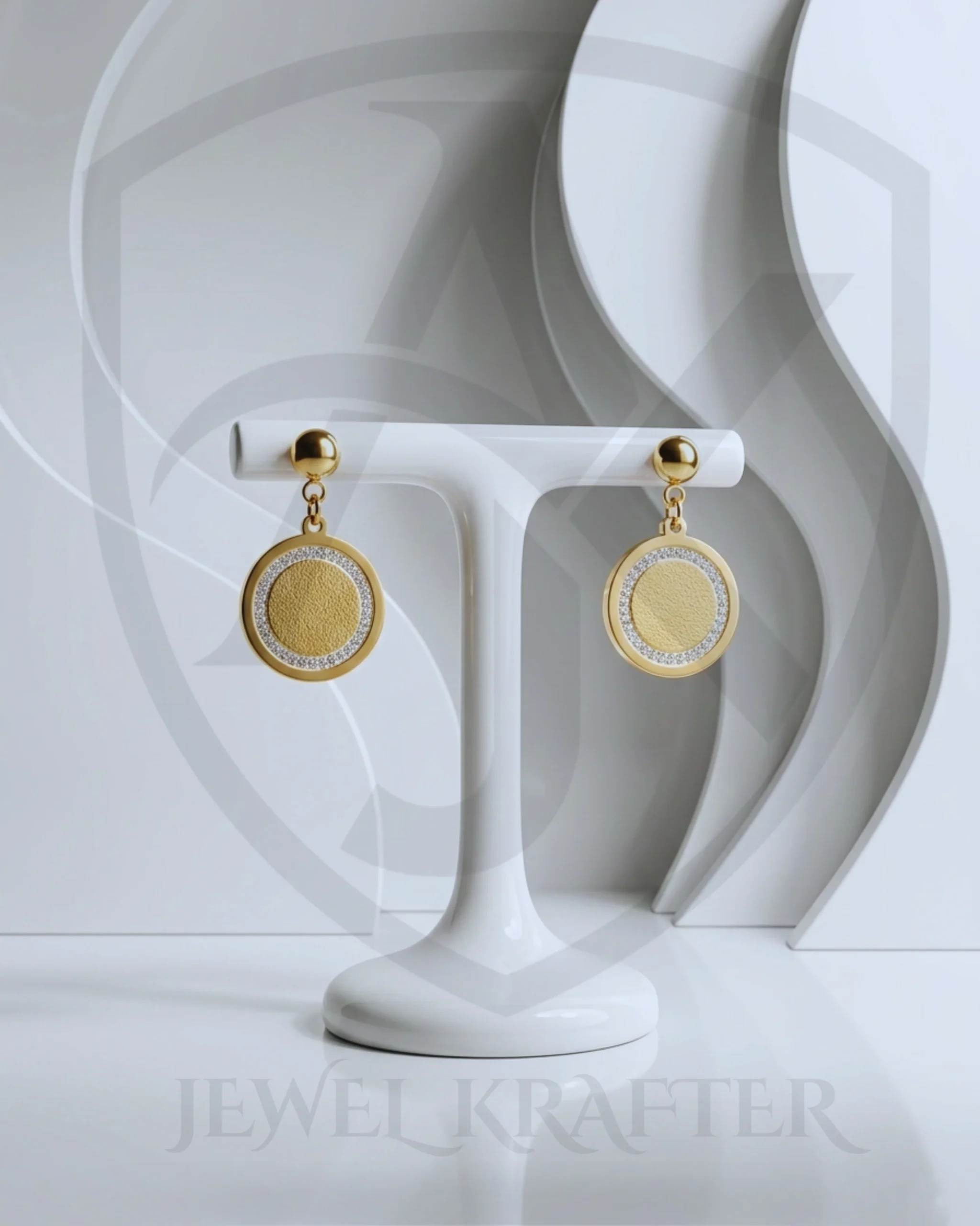 Chic round drops featuring a textured gold center framed by a ring of sparkling stones, perfect for elevating everyday outfits.