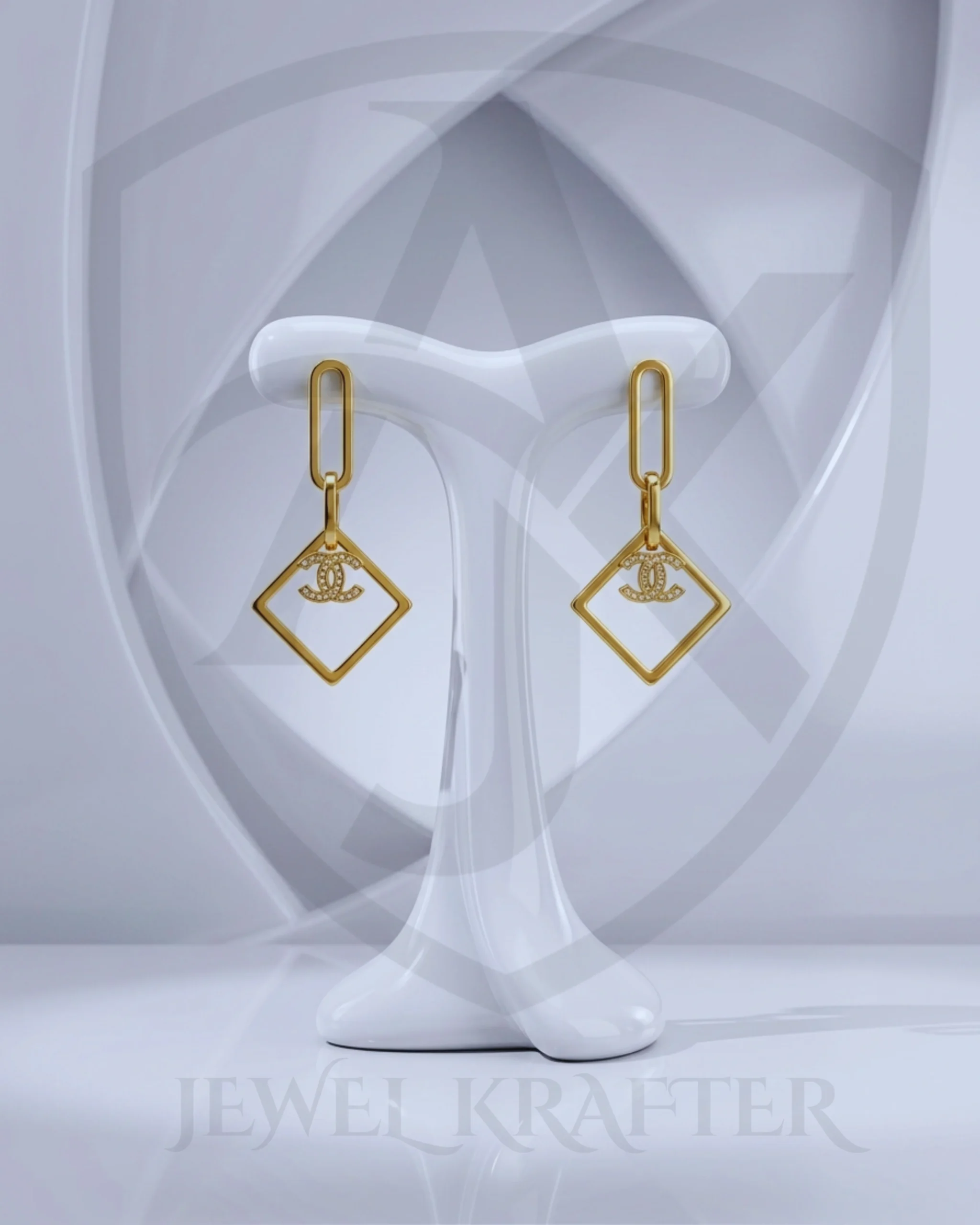 A luminous golden square seems to orbit around a tiny central motif, creating a subtle play of movement and light with every turn of your head.