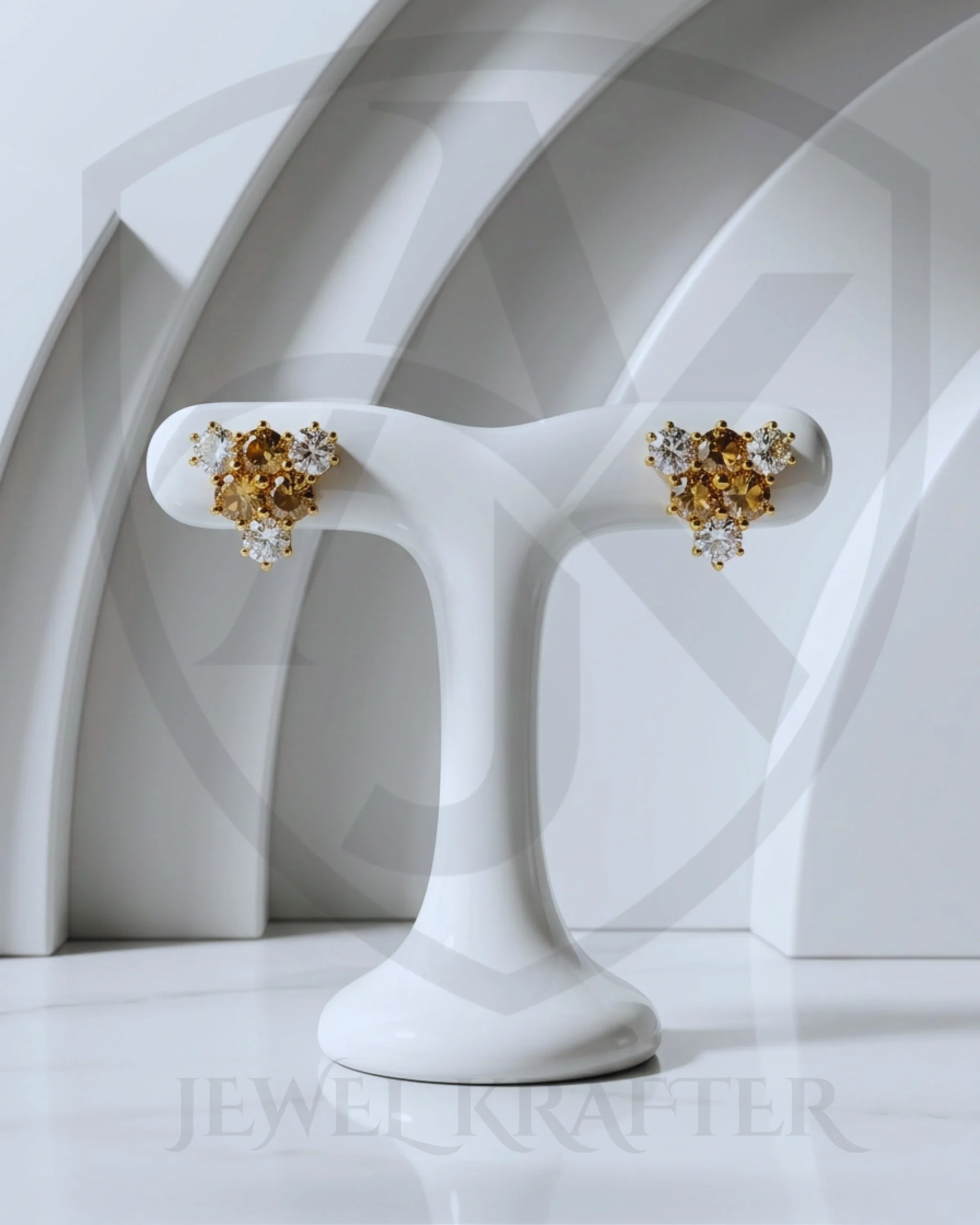 Dainty floral studs combining golden and clear stones, giving a sweet, subtle shine ideal for work or casual wear.