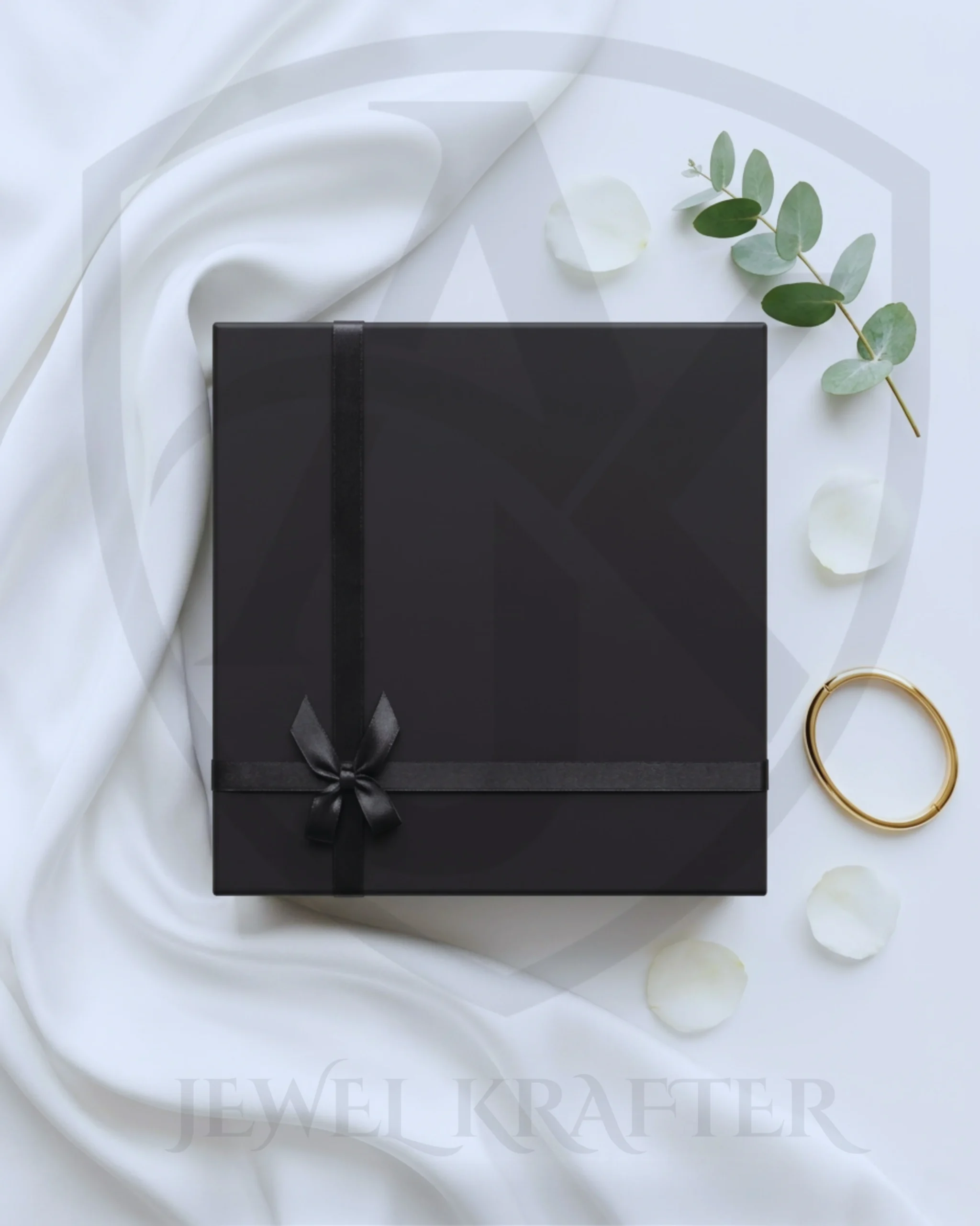 Chic large format matte black box designed to showcase coordinated jewelry sets with simple, refined styling.
