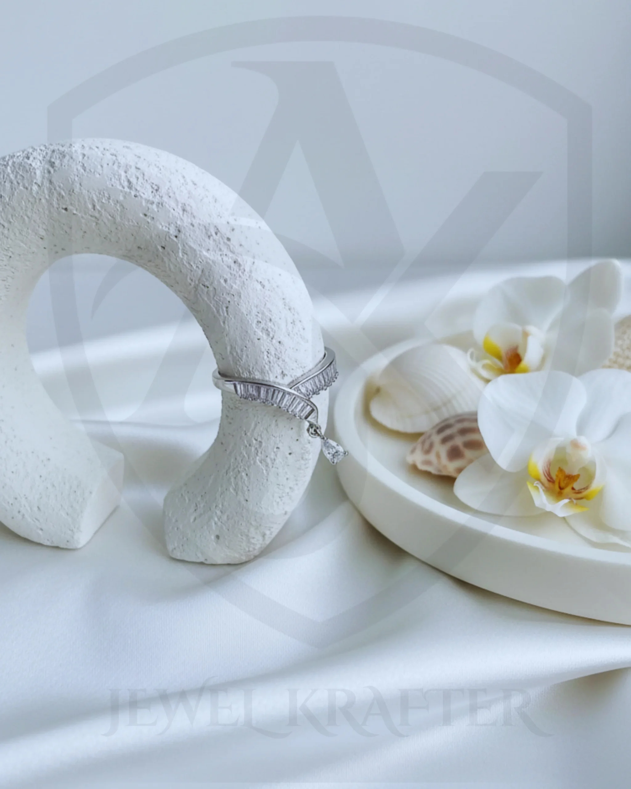 A graceful silhouette adorned with shimmering stones, finished with a delicate teardrop charm for subtle luxury.
