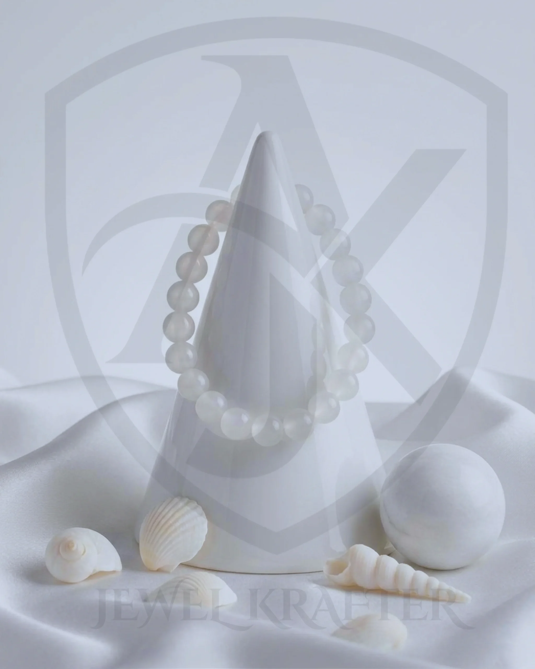 A serene stretch bracelet made with soft milky white beads that reflect a gentle moonlit glow, perfect for adding quiet elegance to any outfit.