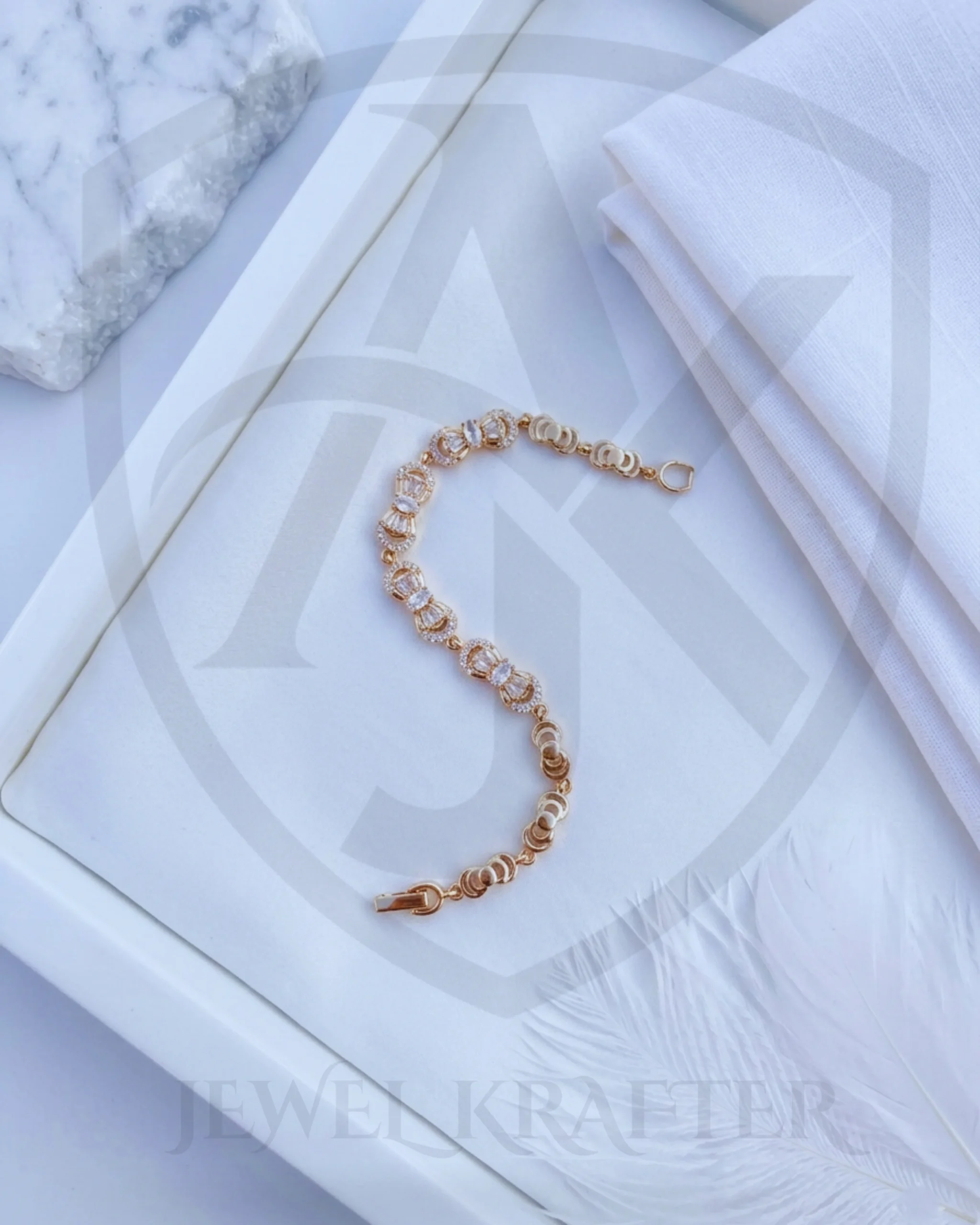 A luxurious rose gold bracelet featuring oval crystal clusters framed with pave detailing and linked by delicate circular motifs, perfect for instantly elevating any outfit.