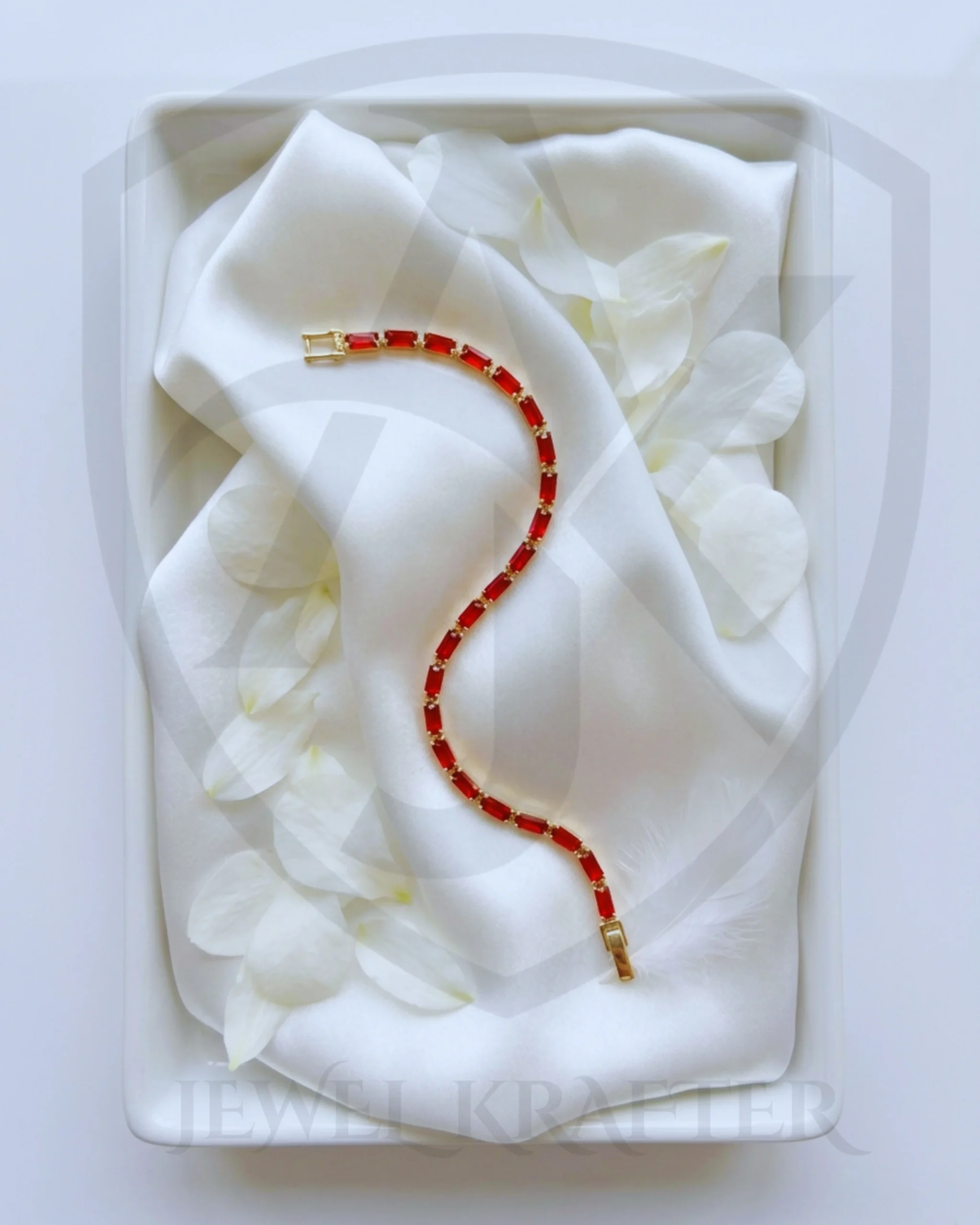 A sophisticated bracelet with precisely set emerald-hued and clear baguette crystals in a silver tone setting, offering understated luxury for both casual and formal outfits.