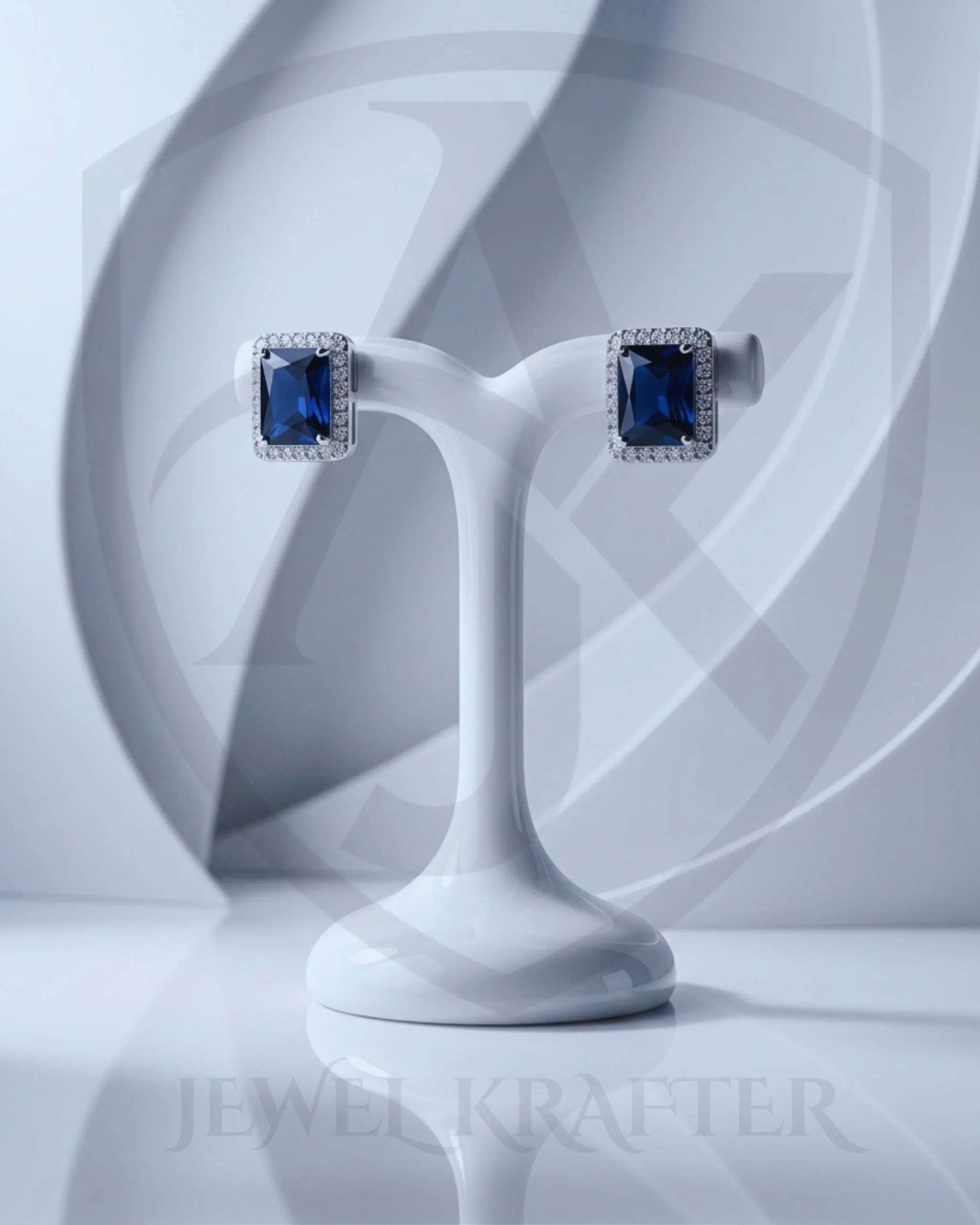 Deep navy centers set in sleek silver toned halos create a refined, minimalist statement ideal for office wear and evening outings.