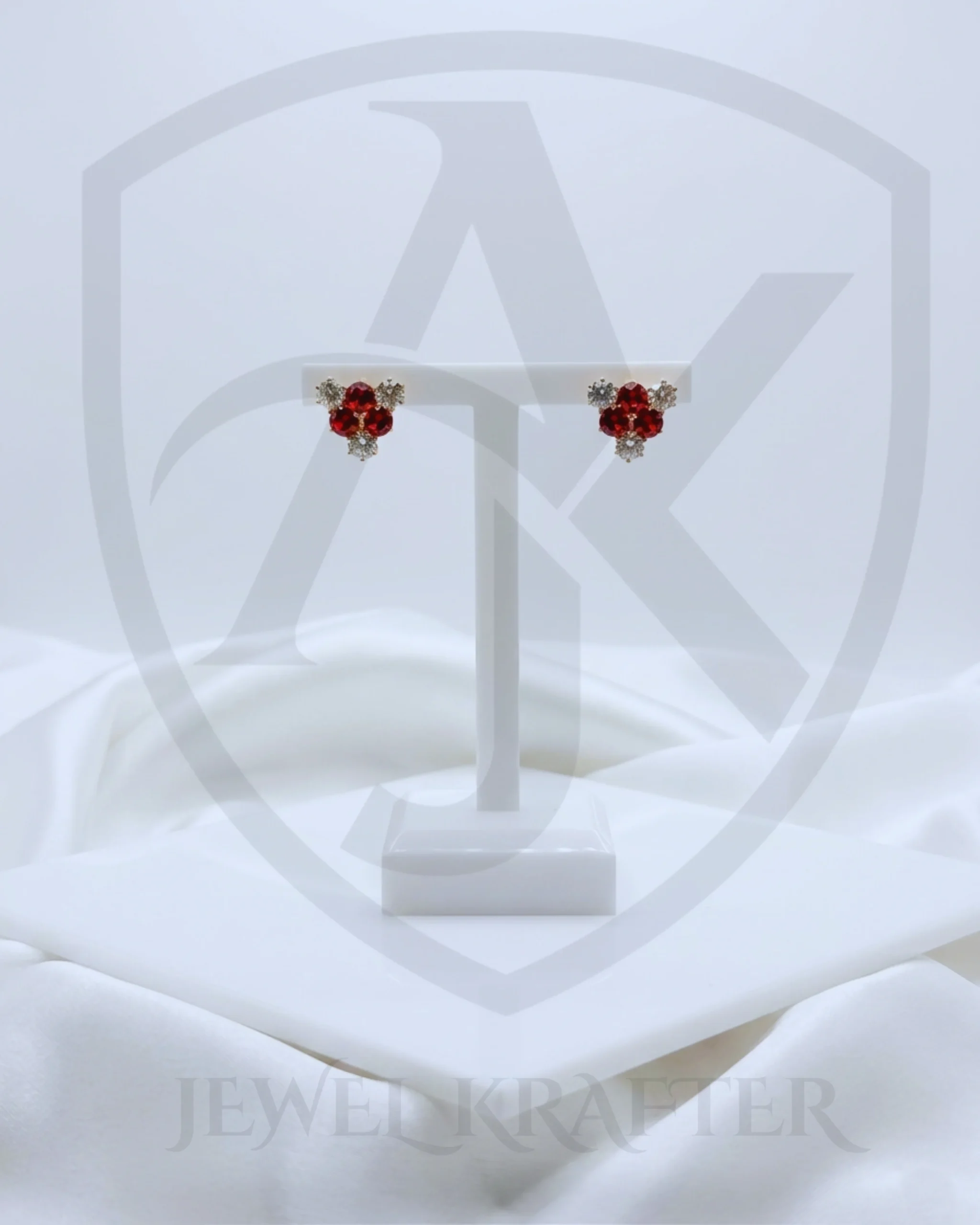 Delicate cluster studs designed like blooming petals, combining red and clear crystals for a cute yet elegant look.