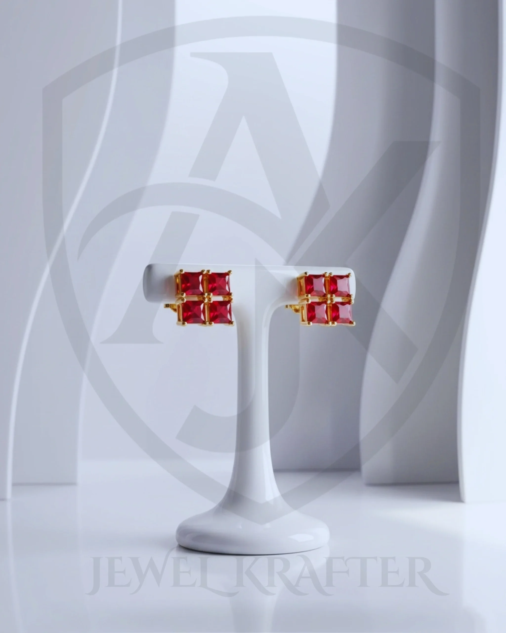 Dainty earrings with clustered red stones arranged in a neat square, held by delicate gold prongs for a rich, luxurious finish.