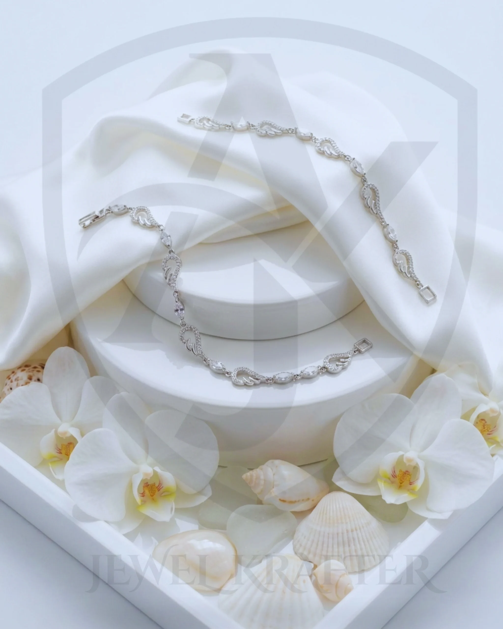 A sophisticated bracelet designed with alternating crystal encrusted curves and smooth oval links, offering just the right amount of sparkle for both Eastern and Western wear.