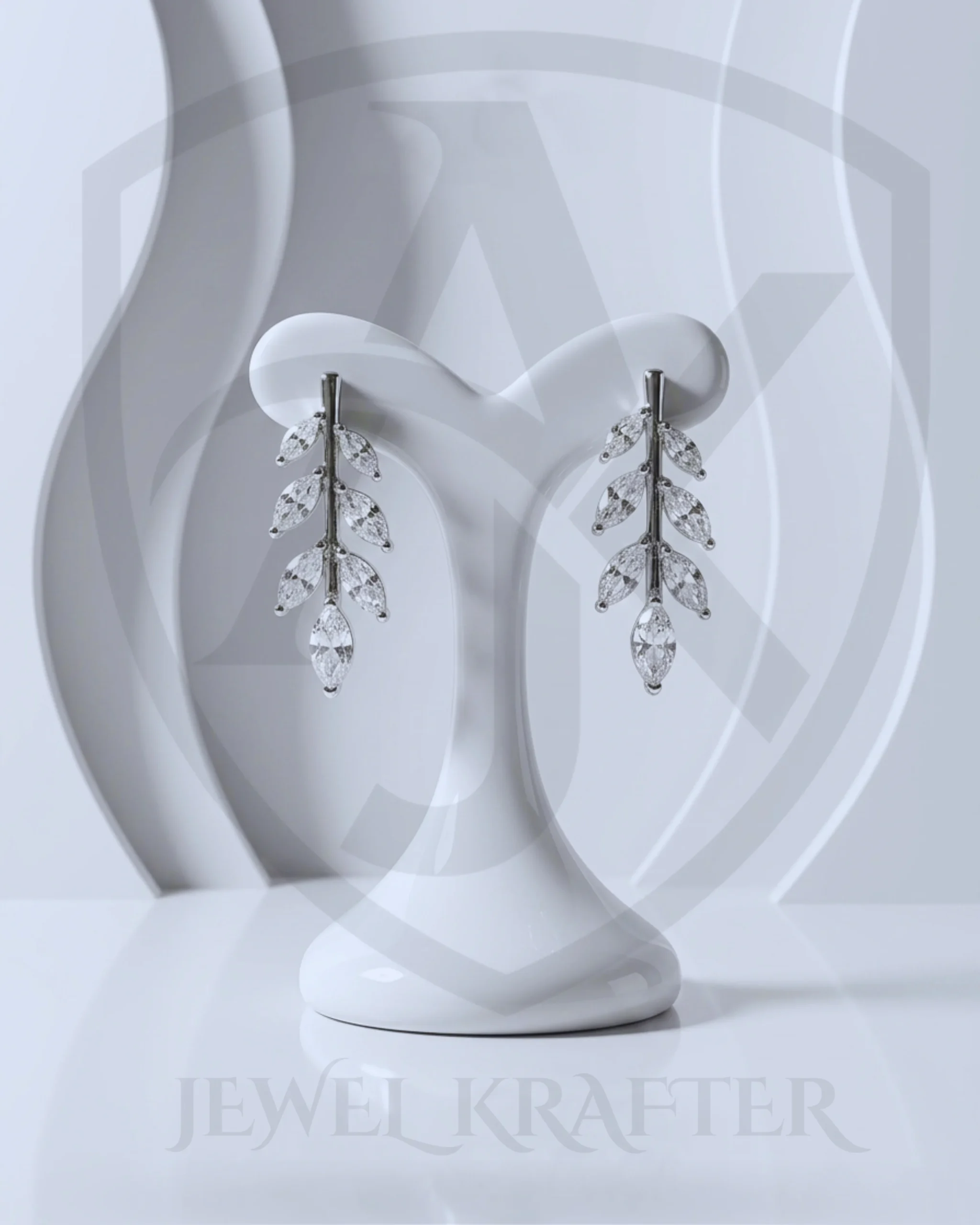 Delicate leaves of clear stones cascade down a polished silver stem, perfect for evening events and special occasions.