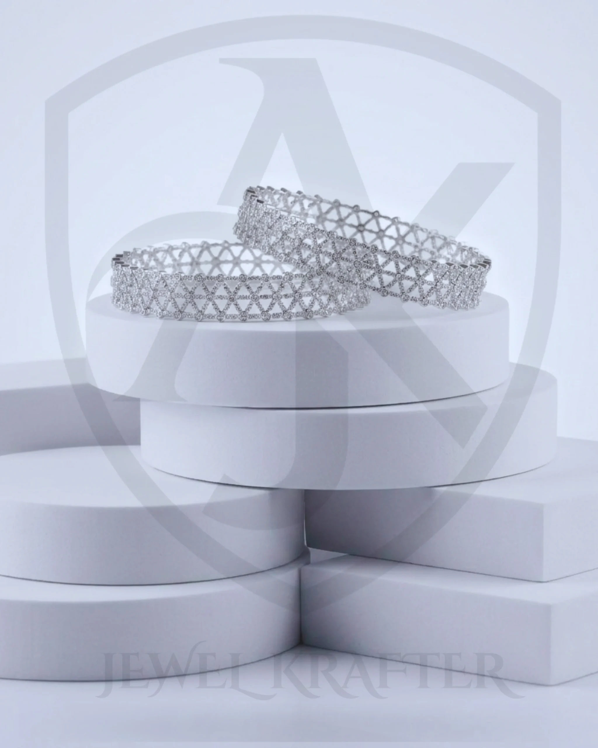 Every angle tells a story of brilliance these statement silver bangles are entirely encrusted with micro pave stones set in a striking repeating triangular pattern.